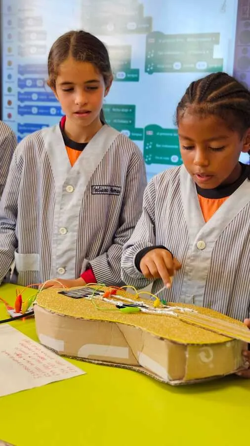 La tasca començava amb un repte compartit: imaginar i dissenyar un invent musical interactiu. Cada equip va definir quines funcions tindria, va escollir els materials i va crear un primer prototip. Aquest punt inicial ja els va permetre posar en pràctica la cooperació, la planificació i la resolució de problemes.
