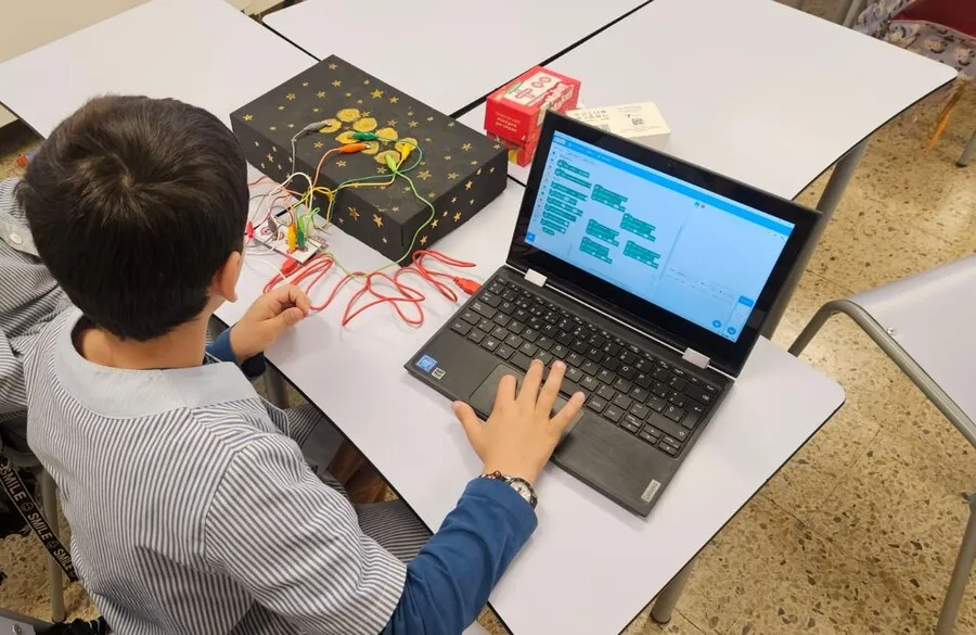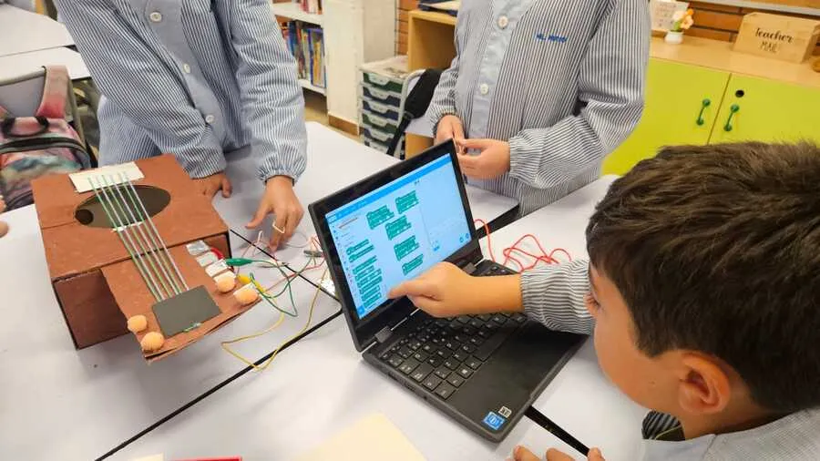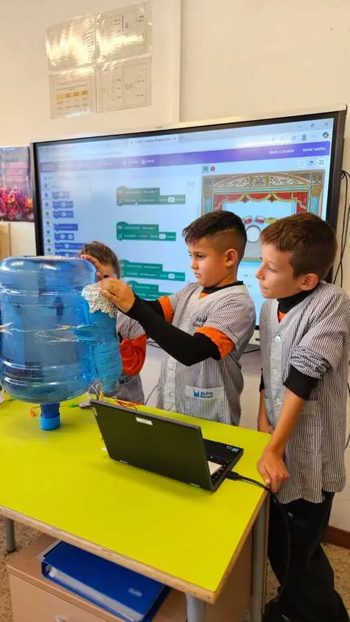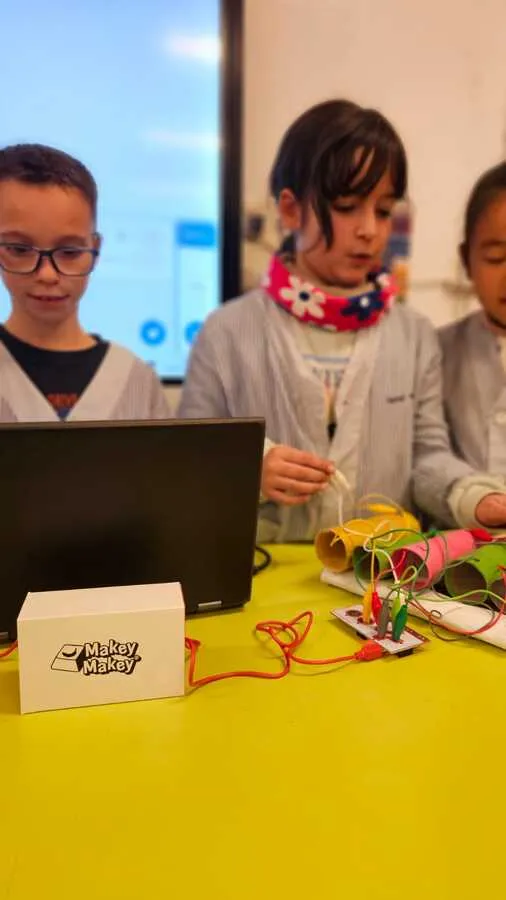 Després va arribar la fase més tècnica. Els alumnes van construir i programar els seus invents amb Scratch i Makey Makey, ajustant-los pas a pas fins aconseguir que funcionessin tal com havien imaginat. Va ser un procés intens però molt enriquidor, on el pensament computacional i la creativitat anaven de la mà.