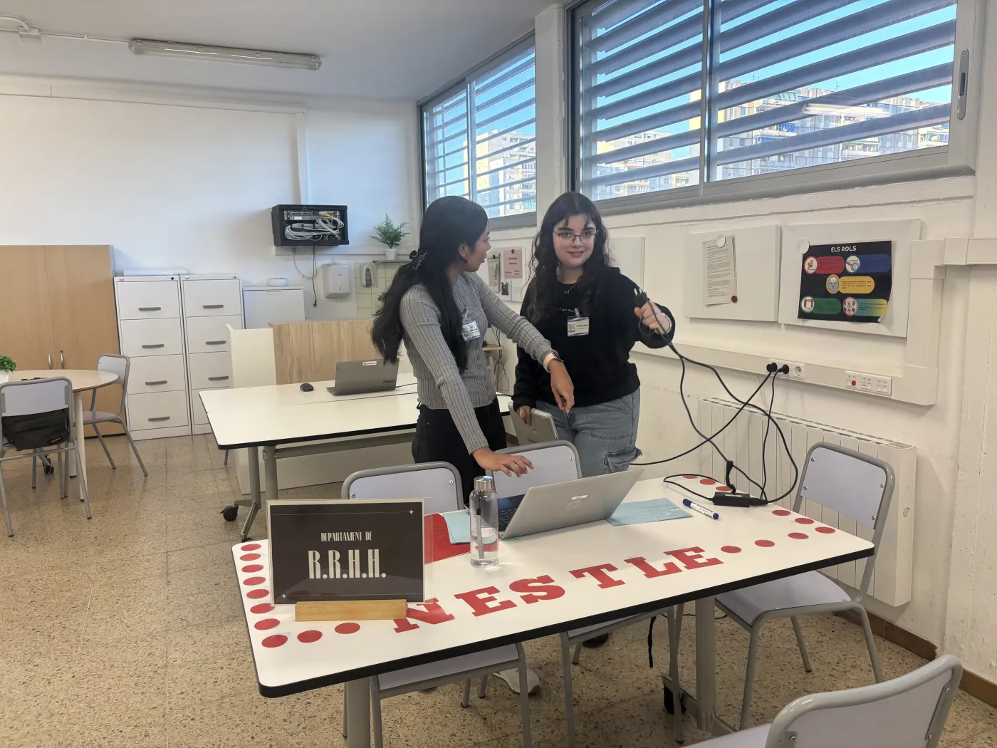 En aquesta simulació, els i les estudiants de GA2 van assumir el paper de tècnics de recursos humans i representants d’empreses, mentre que l’alumnat de 2n d’Administració i Finances (AF2) va participar com a candidats. Al llarg del matí es van dur a terme entrevistes individuals, proves competencials i dinàmiques de grup, que van permetre als estudiants posar en pràctica els seus coneixements tècnics, les seves habilitats professionals i les competències comunicatives necessàries en un entorn laboral real.