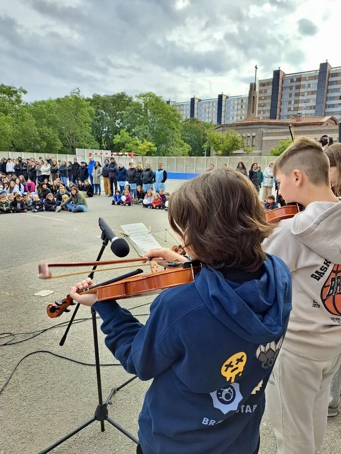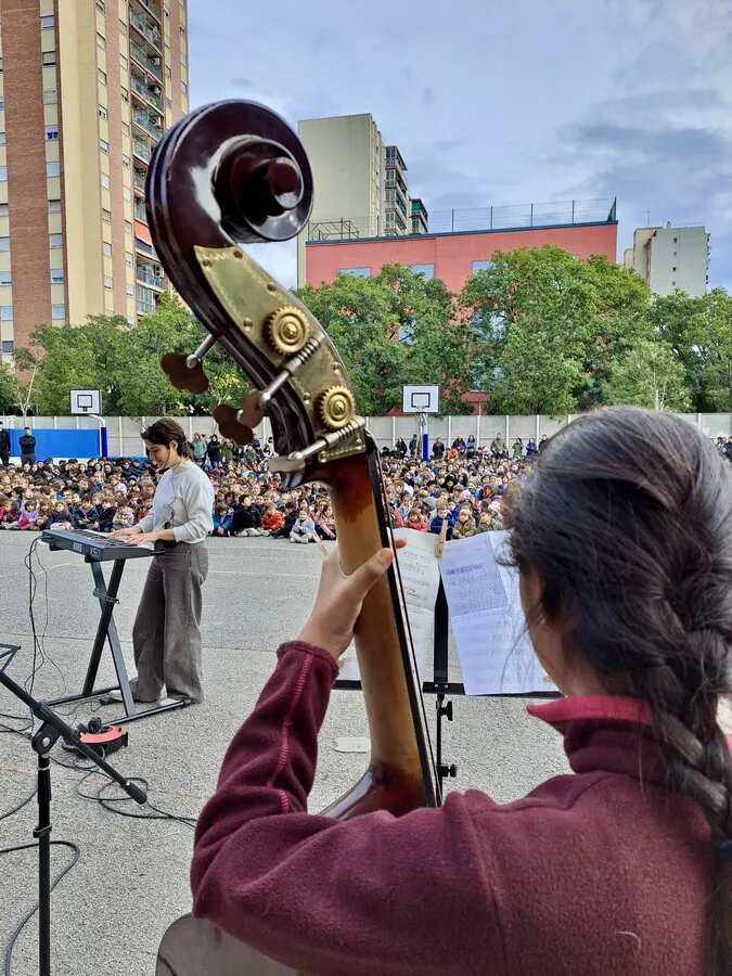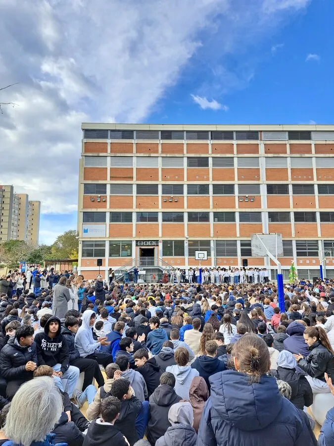 Tot seguit, hem gaudit d’una emotiva interpretació de l’Himne de l’Alegria, a càrrec d'un grup d'alumnes de 1r d’ESO que han interpretat la peça amb instruments i de seixanta alumnes que han fet de cantaires, tots ells dirigits per la professora de música Cristina Gelotti, que també ha tocat el teclat.