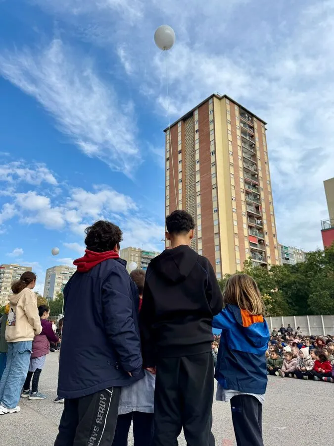 Per tancar l’acte, un grup d’infants ha enlairat uns globus blancs subjectats amb un fil de 2 metres, un gest simbòlic que vol fer arribar ben amunt els desitjos de pau, alegria i protecció per a tots els infants.