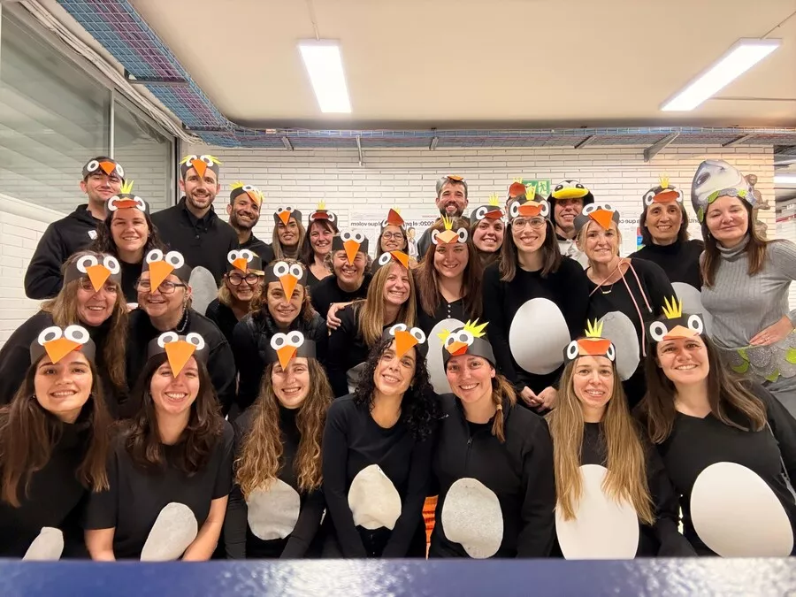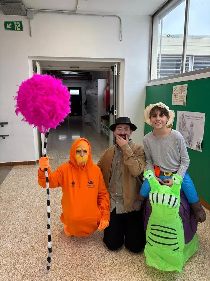 Tot i que la pluja va impedir fer la rua prevista al voltant de l’escola, la festa es va celebrar igualment als passadissos, a les aules i al poliesportiu. Música, rialles i molta imaginació van convertir els espais interiors en un gran escenari de Carnaval, demostrant que les ganes de festa poden amb tot.