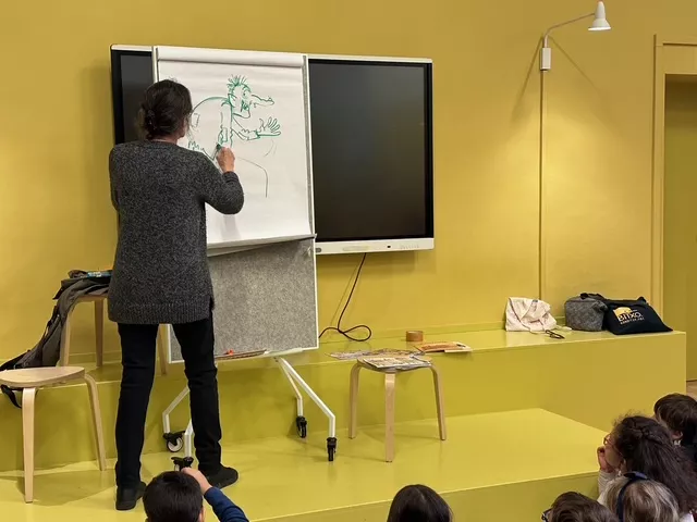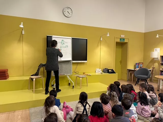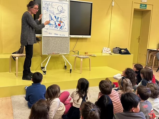 Durant la sessió, els nens i nenes van poder endinsar-se en el procés de creació d’un còmic, descobrint cadascun dels elements que el fan possible. De la mà de Losantos, van aprendre la importància de les bafarades, les línies de moviment i l’ordre correcte de les vinyetes per construir una història visual clara, expressiva i divertida.