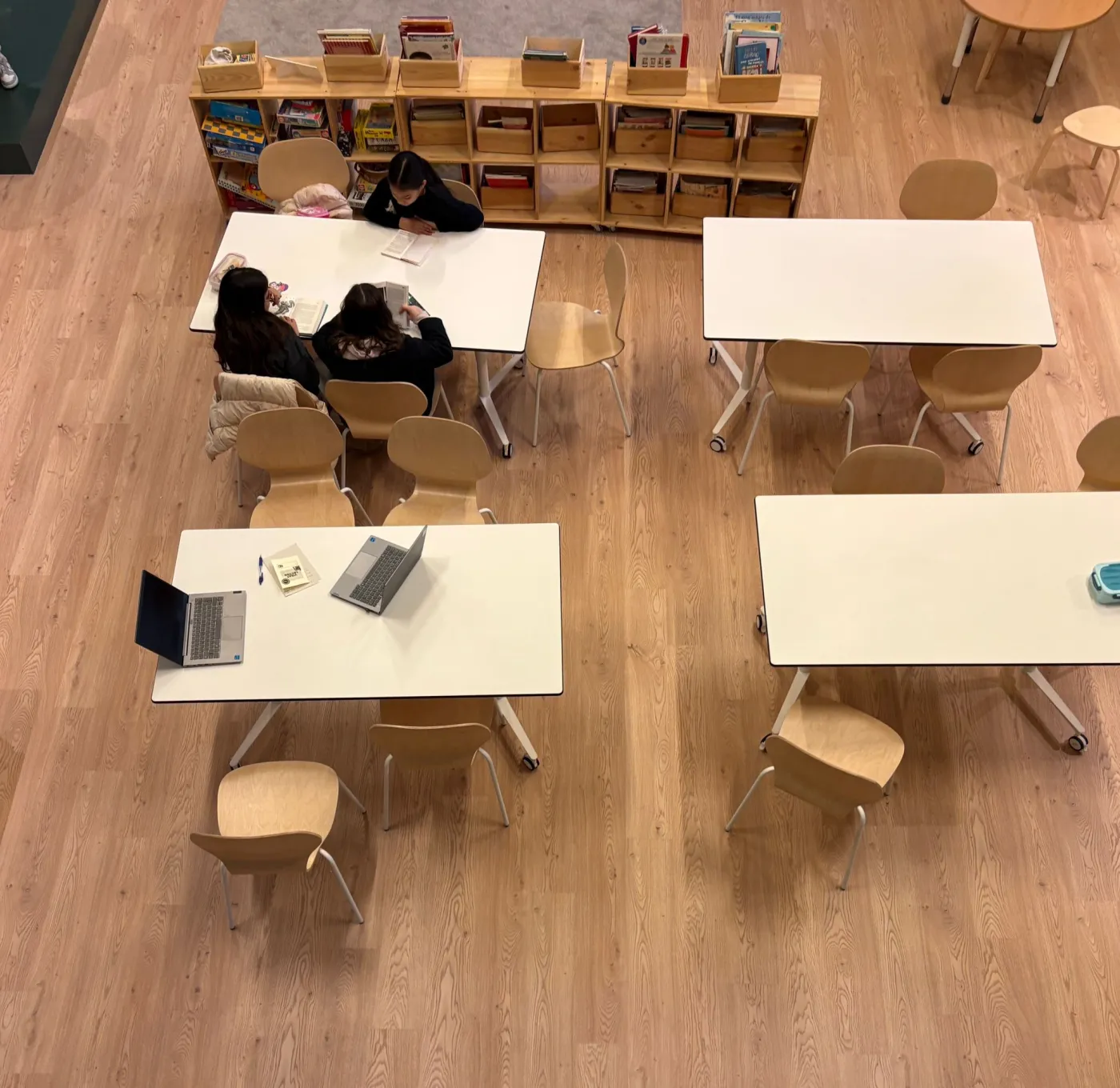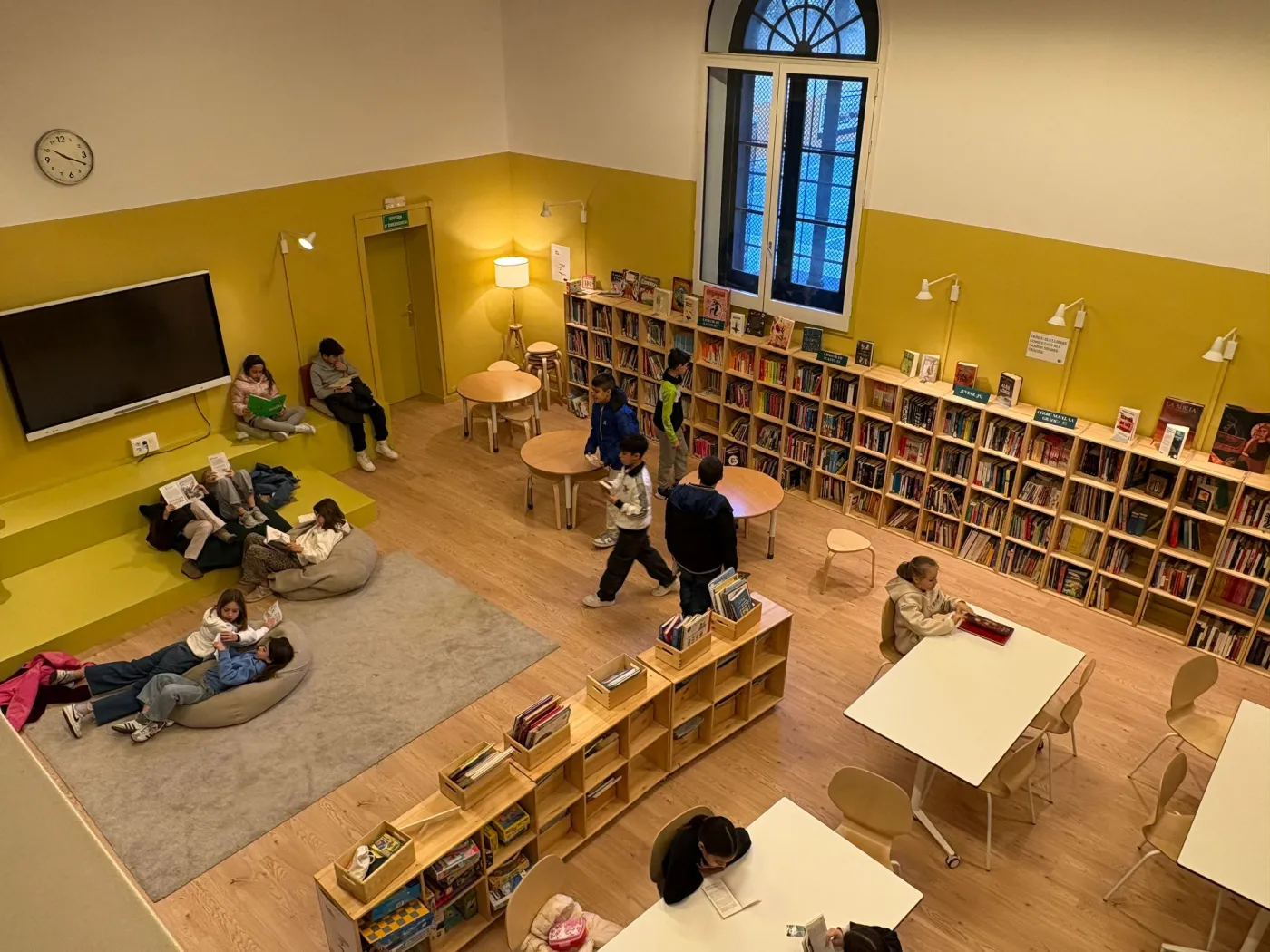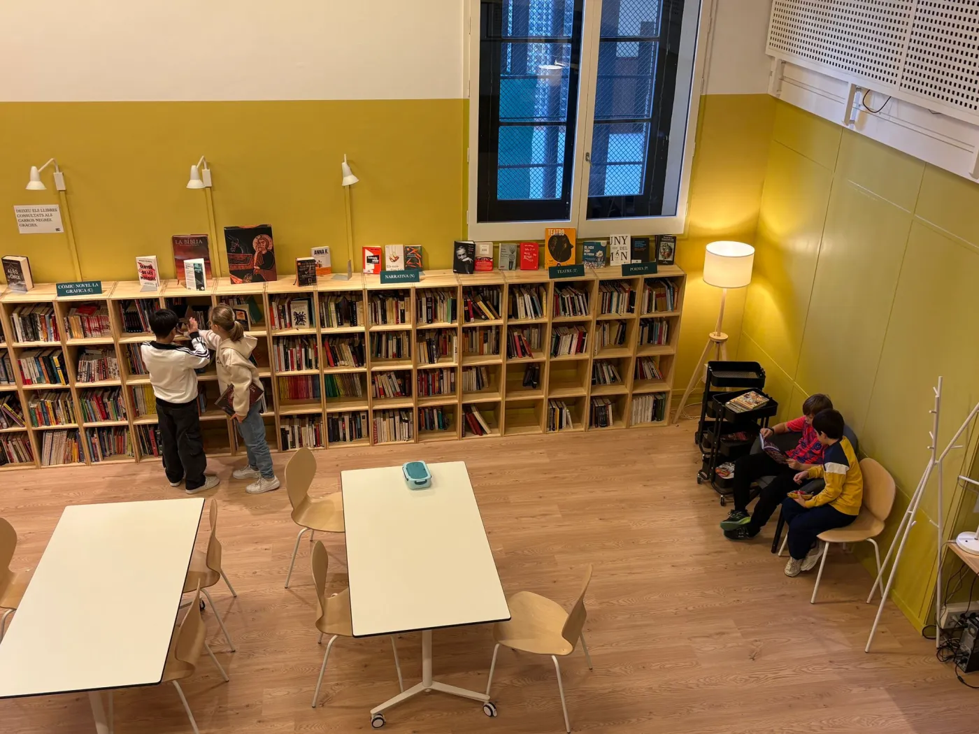 La biblioteca és un espai de calma on els alumnes del centre passen alguns moments del dia per aturar-se, desconnectar del ritme habitual i submergir-se en un llibre. Des dels més petits fins als més grans, les activitats van des de lectures de llibres fins a recitacions poètiques, permetent que cada infant trobi la seva manera de gaudir de la lectura.
