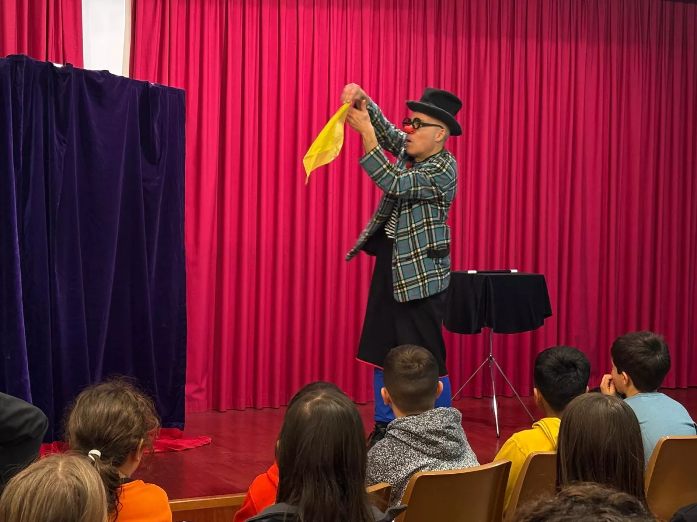 Els alumnes de PIN 2 van gaudir de l’espectacle It’s Magic!, protagonitzat per en Ruskus Patruskus, un pallasso divertidíssim que combina humor i màgia per captar l’atenció dels infants. Tot l’espectacle es fa en anglès, però gràcies a les accions visuals i a la participació activa, els nens i nenes poden seguir la història i aprendre nou vocabulari i expressions de manera natural i divertida.