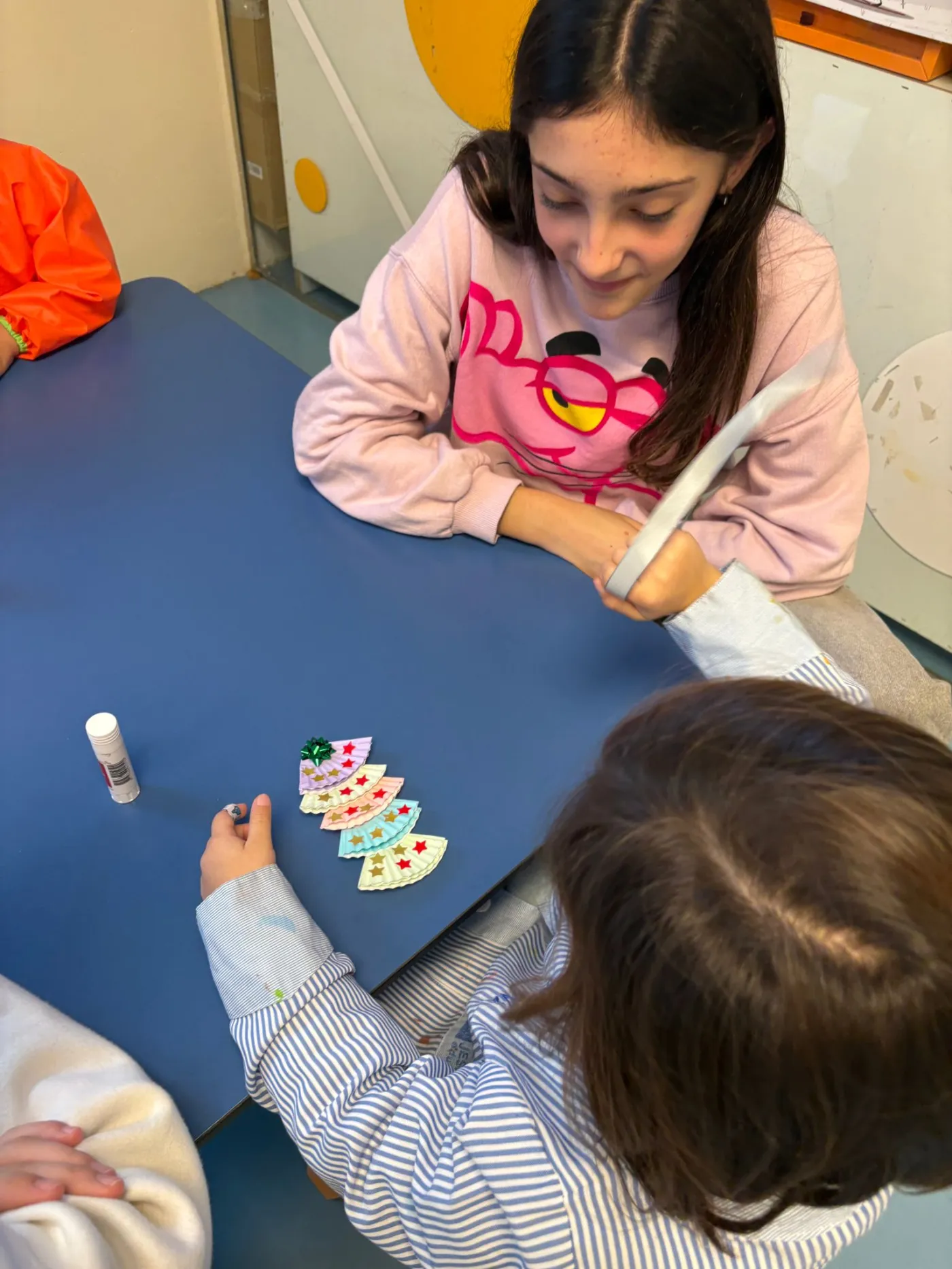 Els alumnes de NEI 5 i NEI 6 han anat a visitar els infants del MOPI per participar junts en un taller de Nadal molt especial. L’activitat ha consistit a elaborar un ornament nadalenc, una creació que els infants s’han pogut endur com a record d’aquest moment compartit.