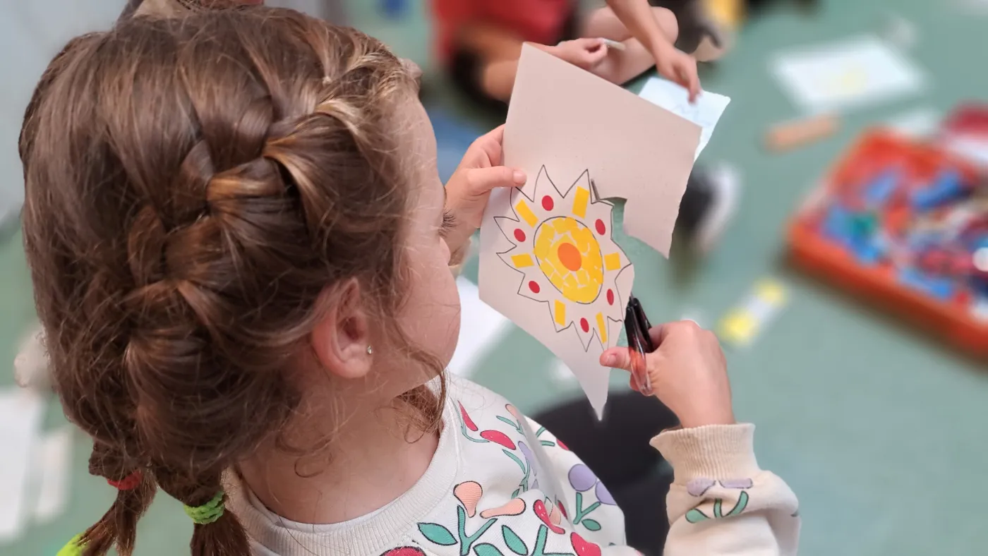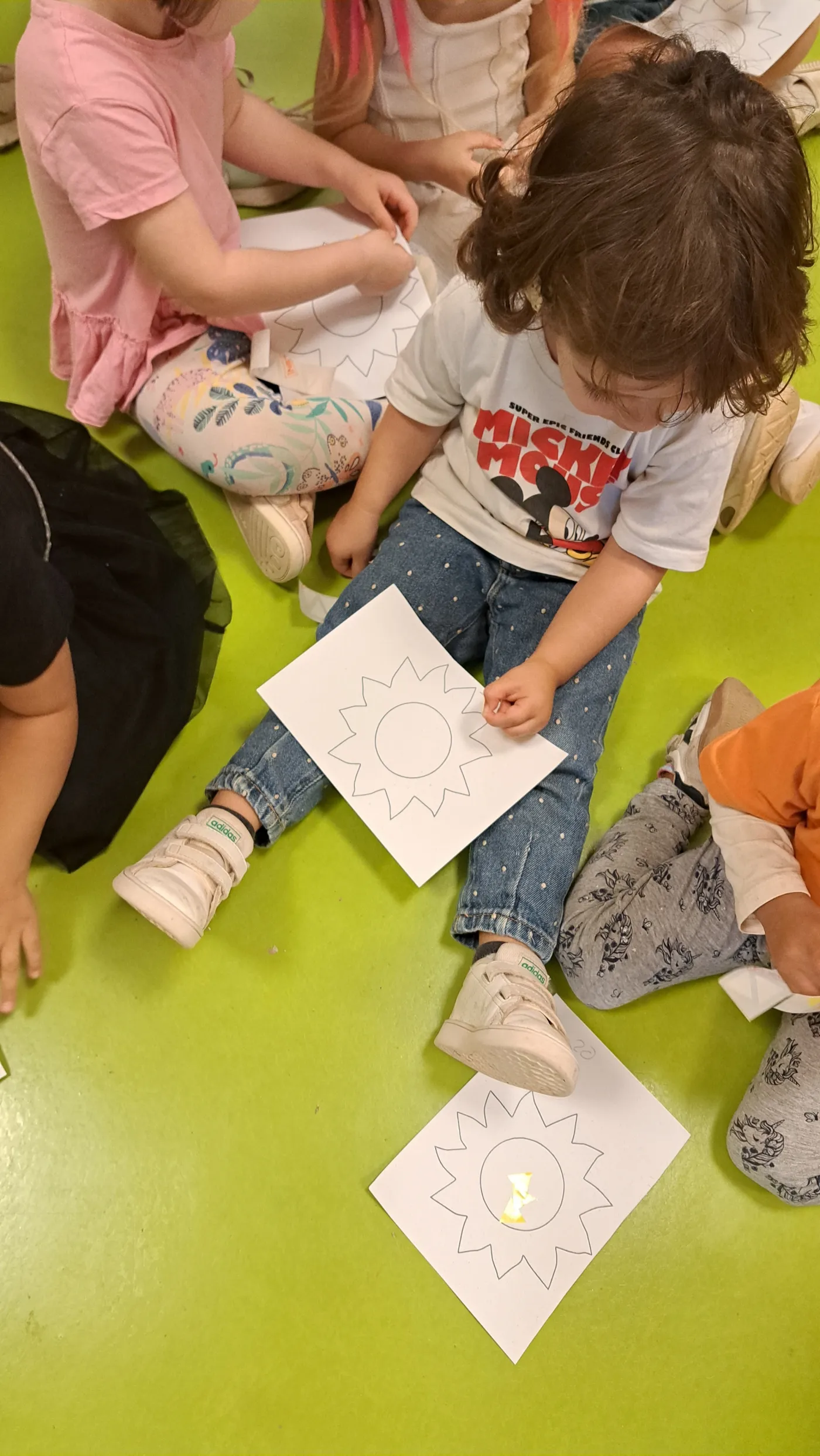 A la tarda, va ser el torn dels infants de MOPI4 fins a PIN2, que es van reunir a l’Espai Trobada per donar la benvinguda a l’Auri amb gran entusiasme. En un ambient alegre i participatiu, van cantar plegats la cançó de les Línies de Força d’aquest curs, “Lliures per Servir”, i van crear el seu propi Auri per endur-se’l a casa.