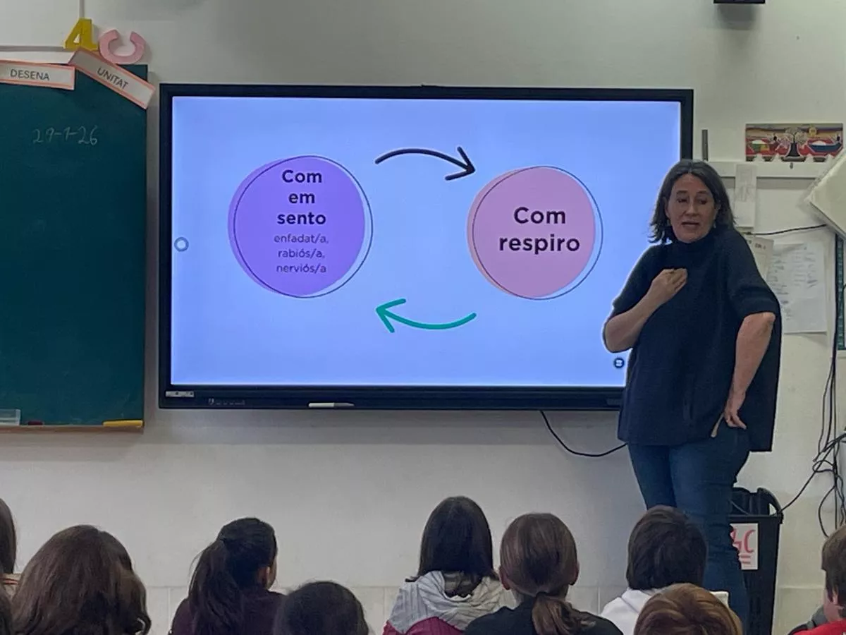 Durant la sessió, han reflexionat sobre com els sentiments influeixen en la respiració i, alhora, com la manera de respirar pot modificar com se senten. Han vist com quan estem nerviosos o alterats, respirem diferent, però també van entendre que també passa a l’inrevés: la manera com respirem també pot influir en com ens sentim. Han après que parar, respirar i escoltar-se són passos essencials per cuidar-se tant físicament com emocionalment.