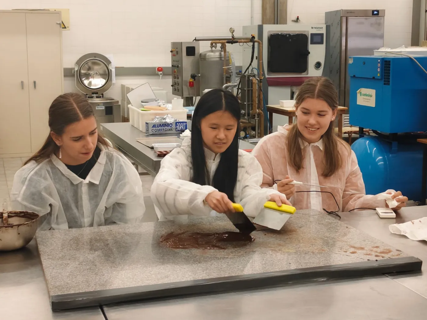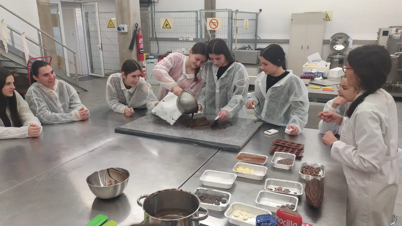 Durant la jornada, l’alumnat va realitzar dos tallers. El primer va estar dedicat a l’elaboració de xocolata a partir del gra de cacau. Els i les estudiants van conèixer tot el procés de transformació, des de la recollida de la llavor fins a la separació dels diferents components, com el cacau i la mantega de cacau. També es van explicar els diversos tipus de xocolata i les pastes de cacau que existeixen actualment. L’activitat es va dur a terme a la planta pilot del campus d'ETSEA, un espai on la universitat investiga i desenvolupa millores en l’àmbit alimentari. La sessió va finalitzar amb l’elaboració de bombons de xocolata.