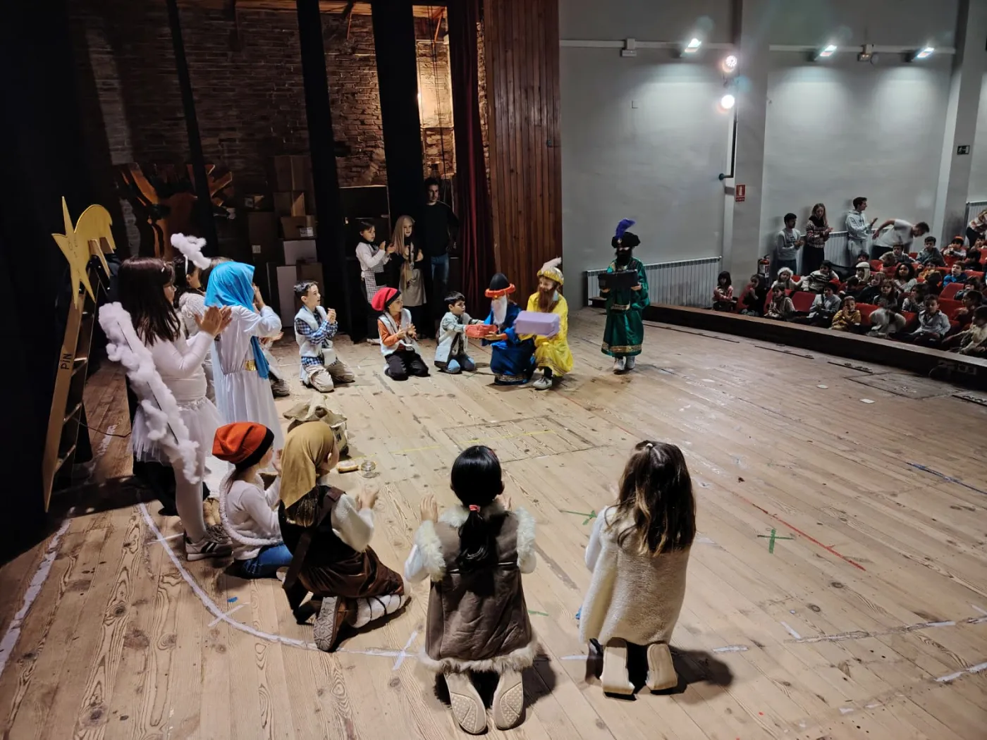 Els nens i nenes de 2n de la PIN han estat els grans protagonistes de la jornada de cloenda de l’últim dia de trimestre amb una entranyable representació dels Pastorets per als seus companys i companyes d'etapa i també del MOPI. Després de dies d’assajos, han pujat a l’escenari amb molta il·lusió i entusiasme per donar vida a la història de Nadal, mostrant la seva evolució, expressivitat i ganes de fer-ho bé davant d’un públic molt atent.