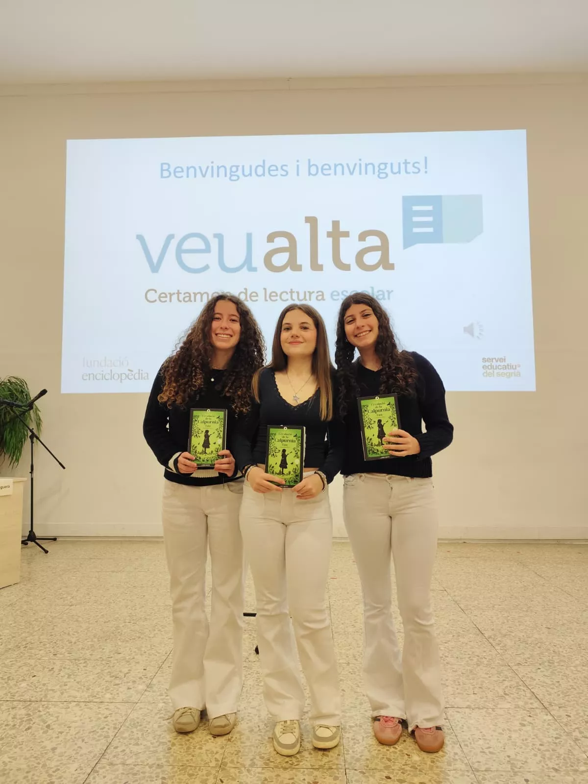 Tres alumnes de 4t d’ESO-TQE de Jesuïtes Lleida Col·legi Claver – Violeta Solana, Aina Manzano i Eva Dot – han aconseguit classificar-se com a finalistes de la seva zona en la categoria Tropa de Corsaris del Certamen Nacional Infantil i Juvenil de Lectura en Veu Alta, organitzat per la Fundació Enciclopèdia Catalana amb la col·laboració del Departament d’Educació de la Generalitat de Catalunya. Aquesta iniciativa promou la lectura en veu alta i fomenta la literatura i la llengua catalanes entre infants i joves de tota Catalunya.