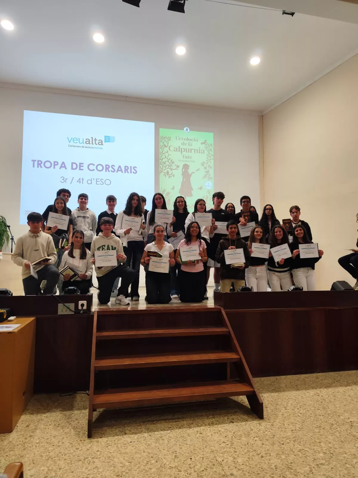 Els participants de la categoria Tropa de Corsaris treballen en grups de tres lectors i lectores, repartint-se els papers per oferir una lectura dramatitzada del fragment assignat del llibre escollit per l'organització del certamen. A la semifinal, les nostres alumnes van demostrar una bona dicció, ritme i interpretació davant del jurat, per la qual cosa van aconseguir la primera posició. En reconeixement a la feina feta, tots els participants van rebre un diploma i un llibre.