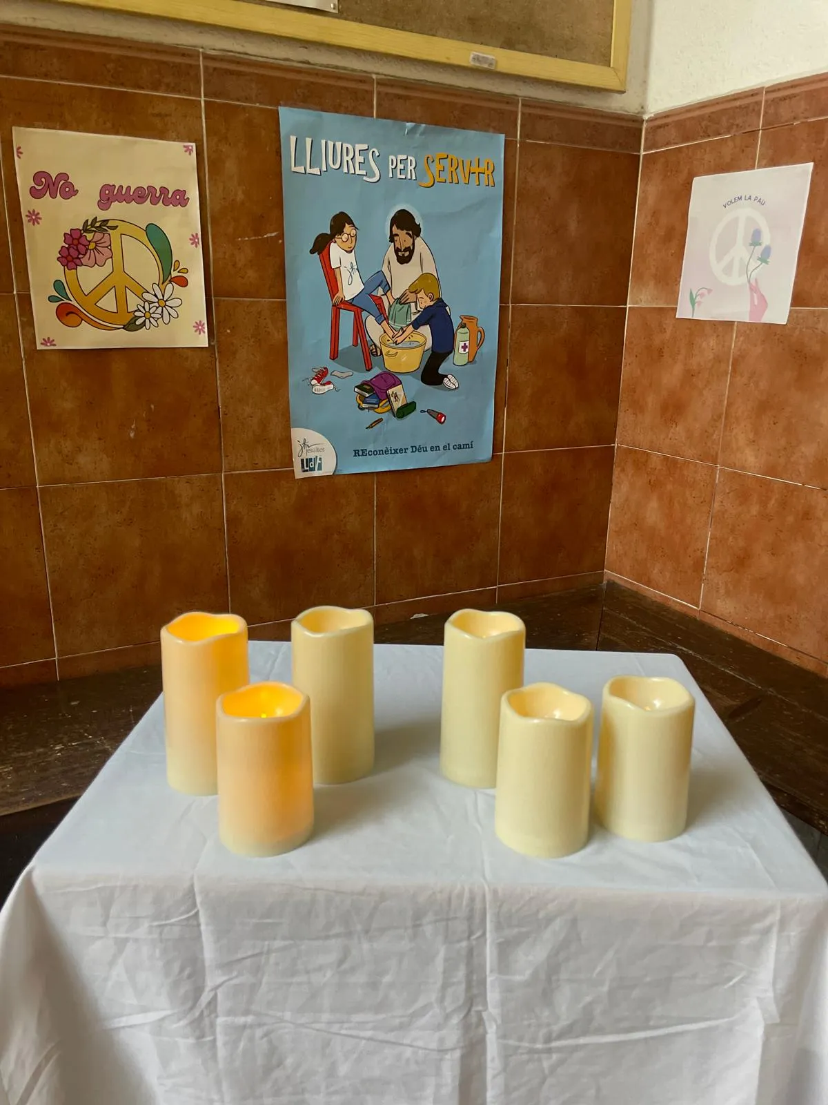 L’acte ha començat amb l’encesa d’unes espelmes, símbol de la llum i de l’esperança que volem compartir amb totes les persones que pateixen. Tot seguit, hem escoltat unes paraules de la Laura Delgado que ens han ajudat a reflexionar sobre la importància de l’amor, la fraternitat i la pau: