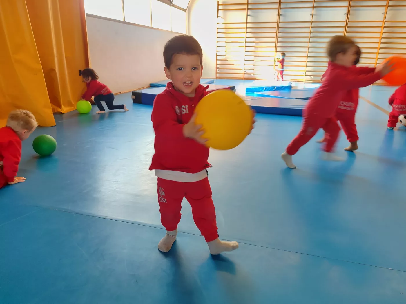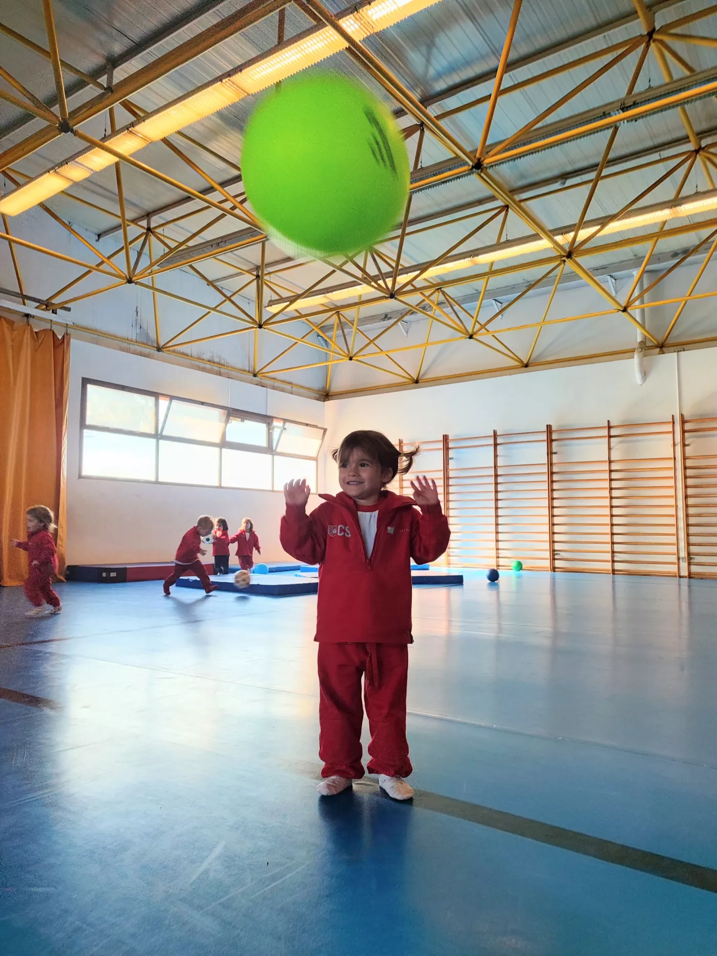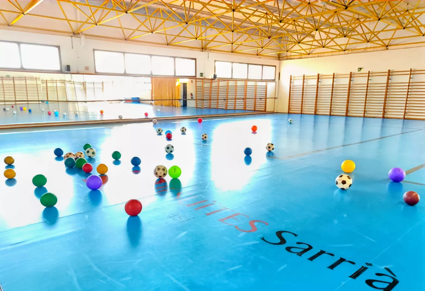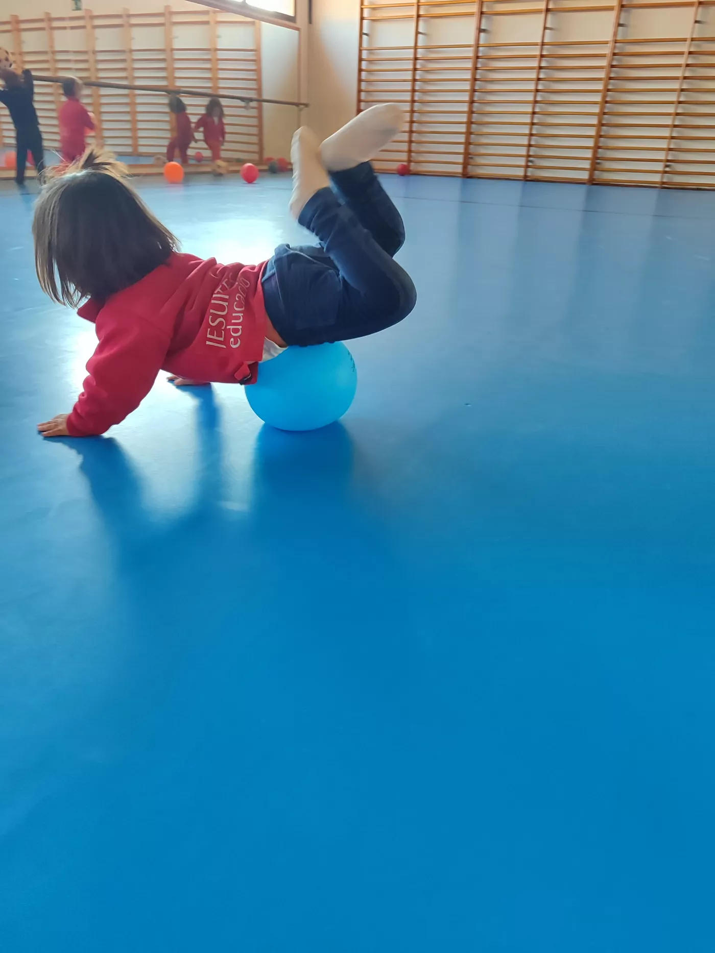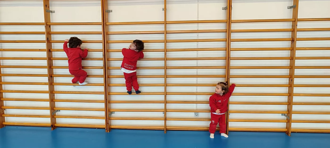 Aquest espai, segur, còmode i ampli, ens ha permès proposar una gran varietat d’activitats, com salts, joc lliure amb pilotes, circuits d’equilibri, tombarelles, curses, estiraments a la barra i a les espatlleres, jocs de persecució i rutines de relaxació.