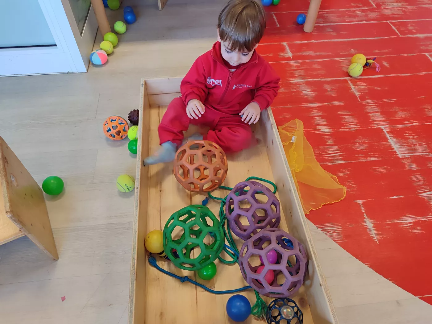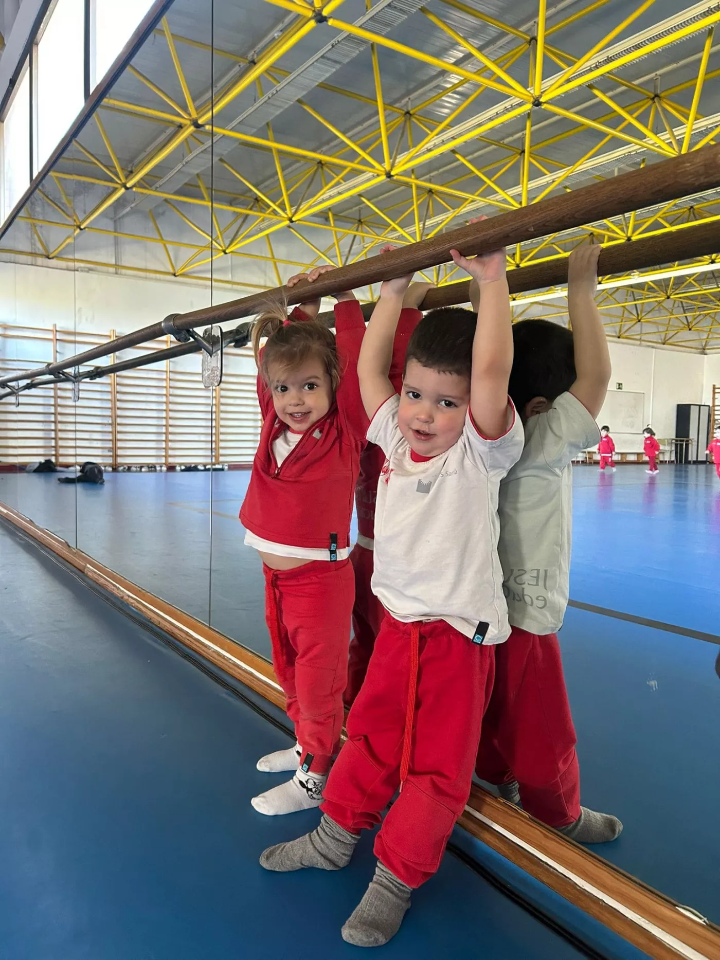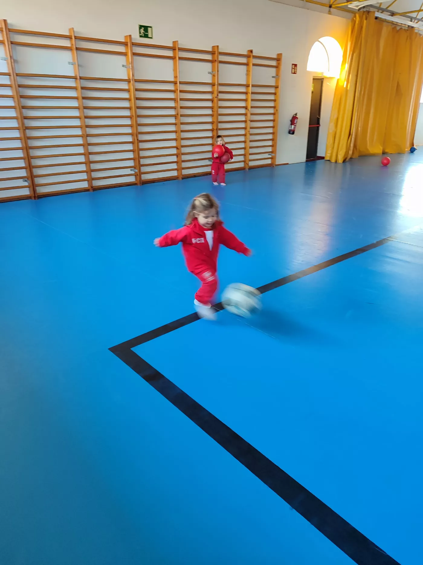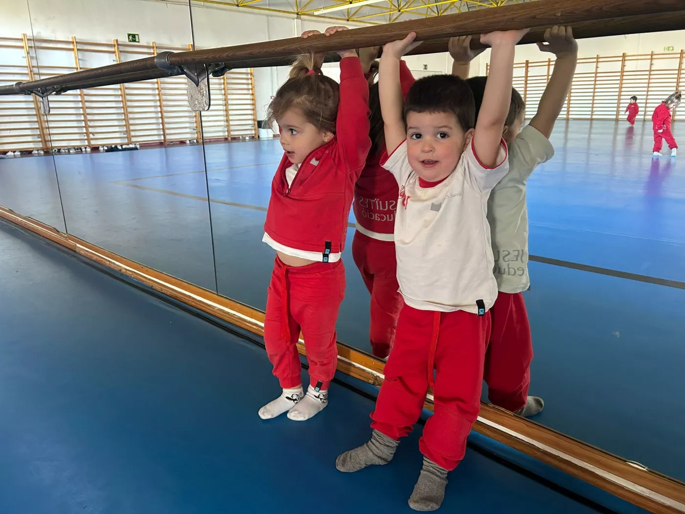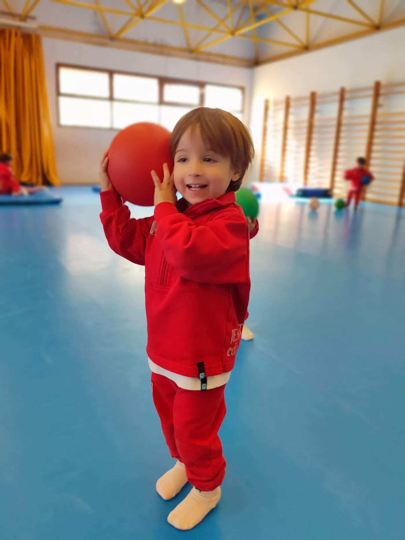 Aquest espai, segur, còmode i ampli, ens ha permès proposar una gran varietat d’activitats, com salts, joc lliure amb pilotes, circuits d’equilibri, tombarelles, curses, estiraments a la barra i a les espatlleres, jocs de persecució i rutines de relaxació.