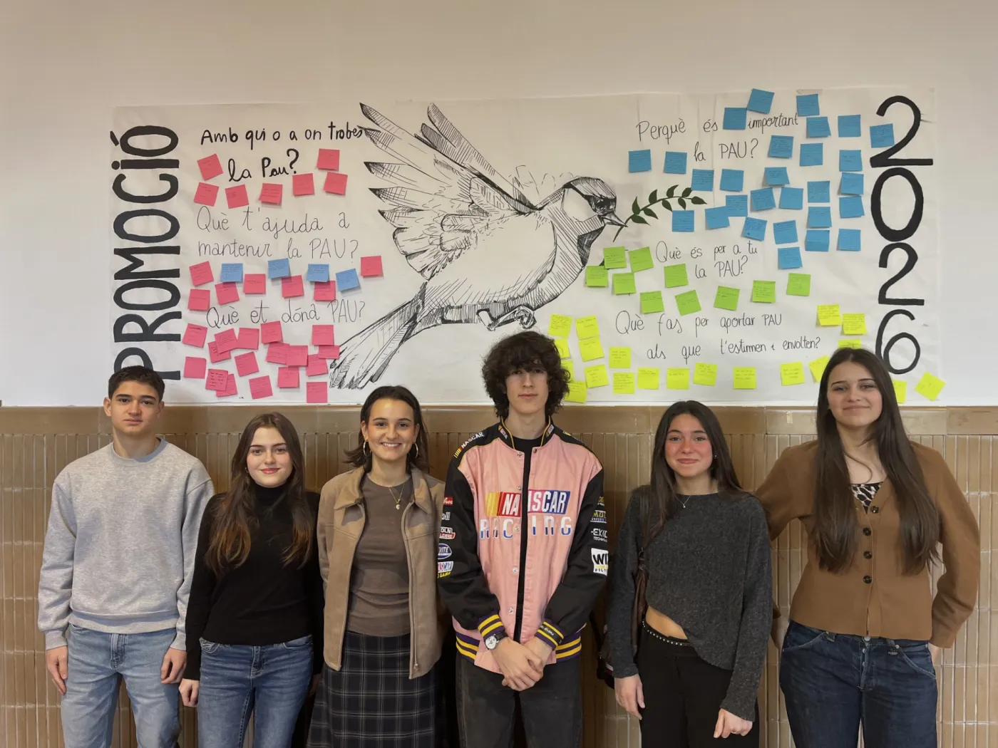 A Batxillerat, aquesta setmana, durant la tutoria, l’alumnat de l’itinerari artístic, amb la col·laboració de la professora Mercè Jou, ha elaborat el mural commemoratiu del Dia de la Pau. Es tracta d’una activitat col·laborativa i creativa que fomenta l’expressió artística i la reflexió col·lectiva.