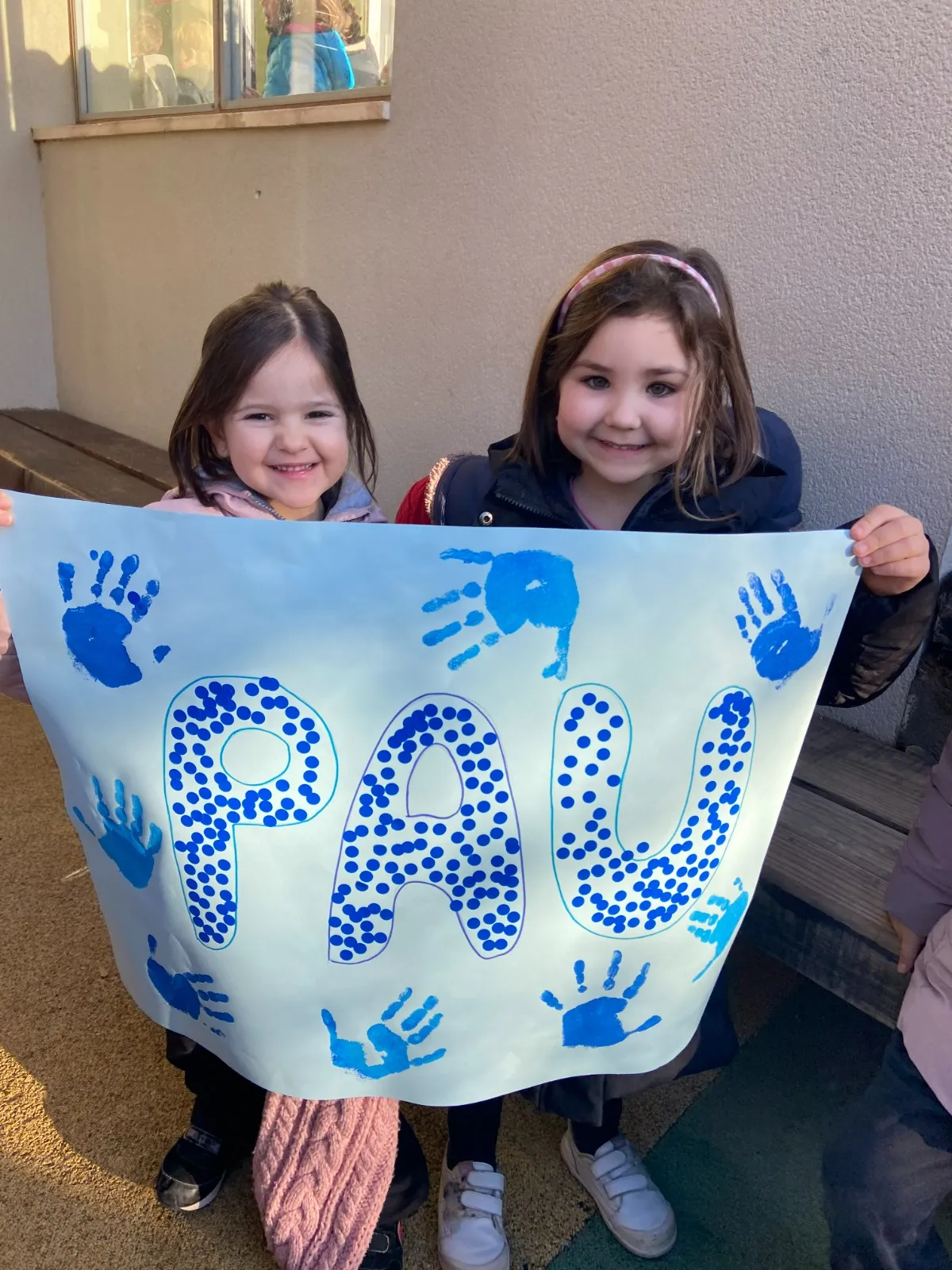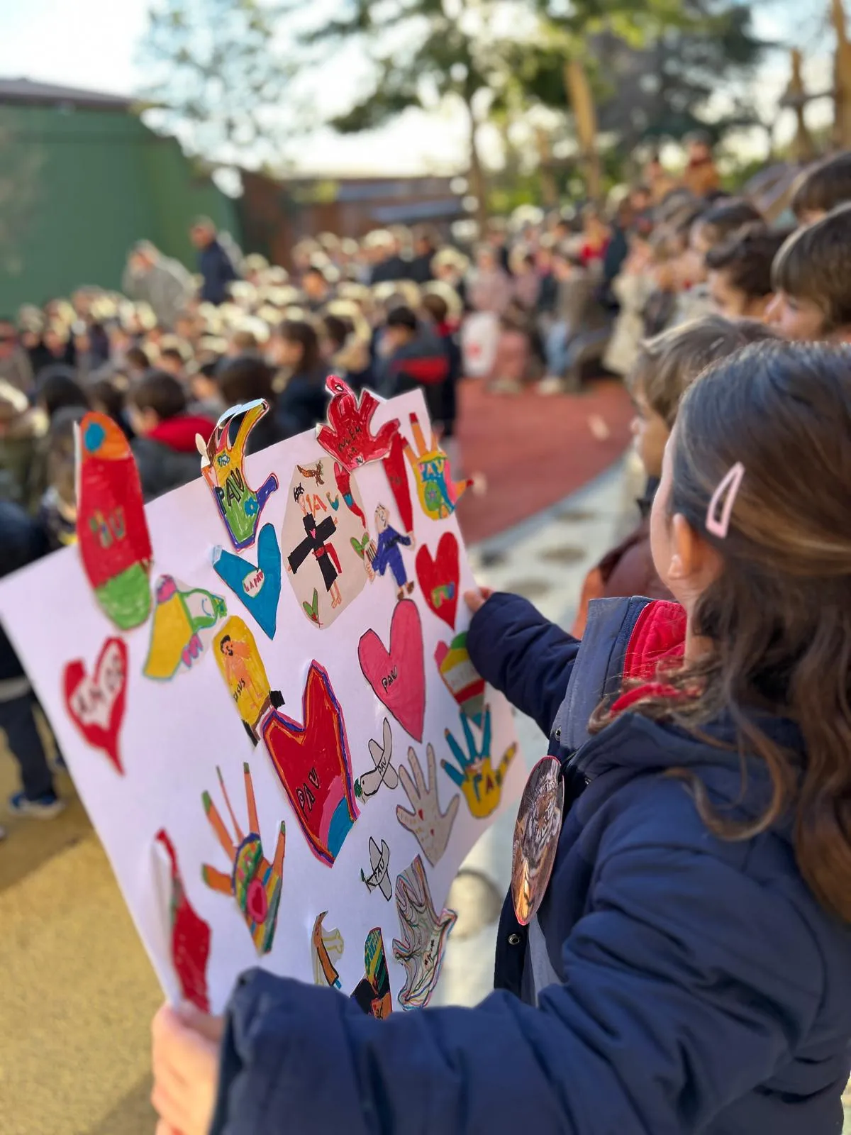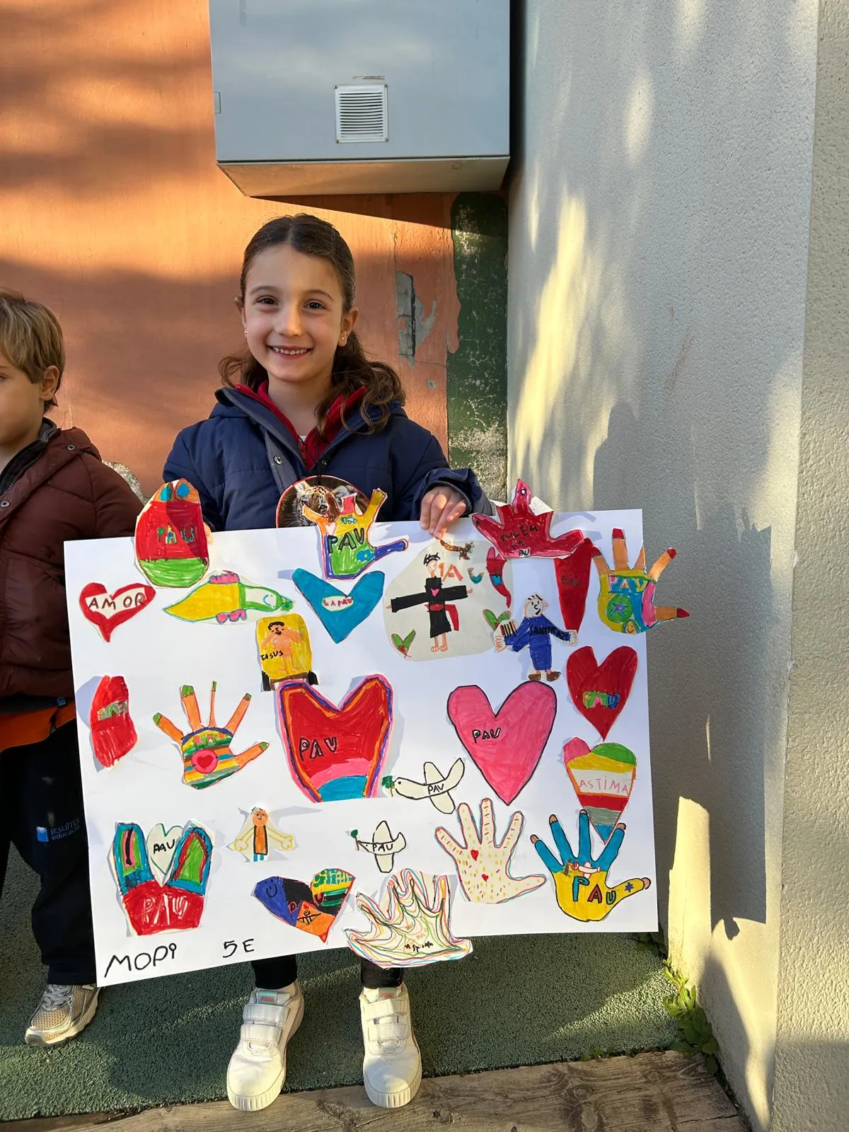 A Infantil, per exemple, hem cantat el “Cant de la Pau” i hem sortit als patis amb les pancartes que hem preparat. Dies abans, dins la programació de la Formació Humana i Pastoral de l’etapa, vam treballar el concepte de la pau a través de diversos contes i activitats.