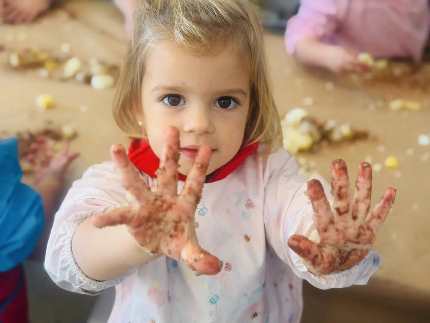 Els alumnes de Llar 2 han gaudit d’una activitat d’experimentació sensorial molt especial, inspirada en la temàtica de la Castanyada i els panellets. A partir de dos elements molt quotidians —la patata i el cacau—, els infants han pogut explorar textures, olors, colors i sensacions tot manipulant, tastant i descobrint com aquests ingredients es transformen amb les seves mans.