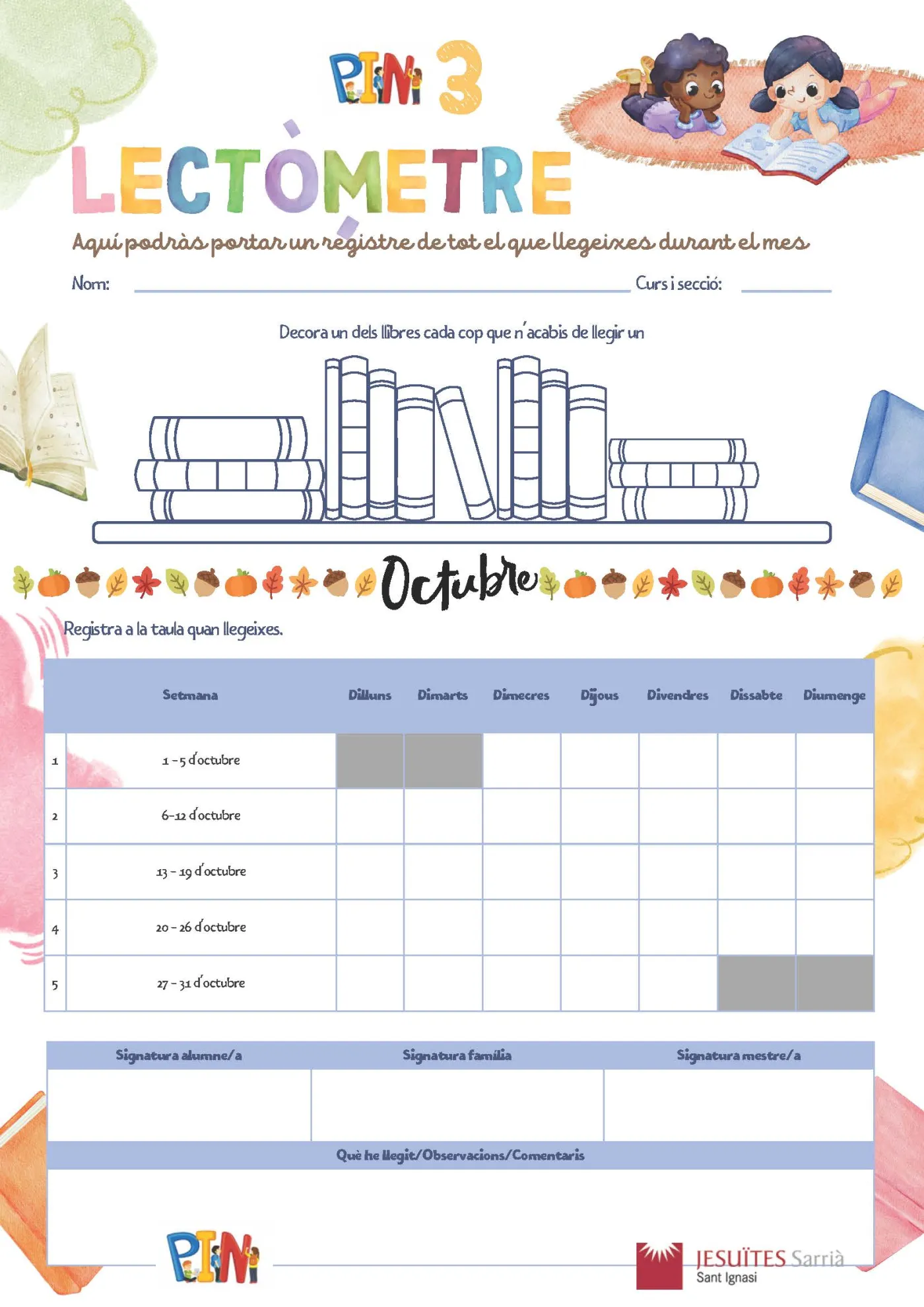 A més de les tasques proposades per l’escola amb l’objectiu de fomentar l’hàbit d’estudi a casa i reforçar continguts treballats prèviament a l’aula, durant aquests dies els nens i nenes de 3r i 4t de Primària portaran a casa una nova proposta anomenada Lectòmetre Literari.