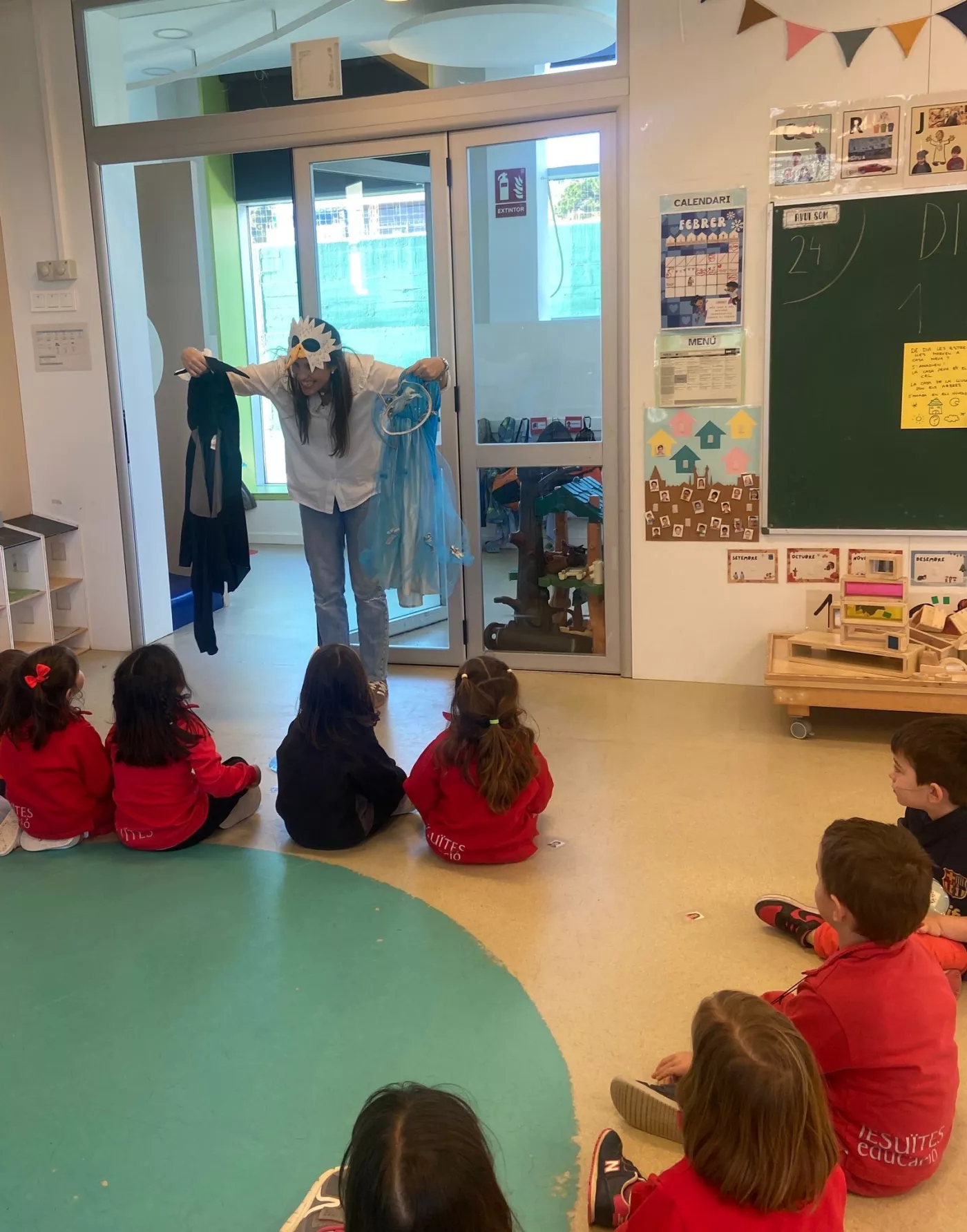 A través de contes explicats amb expressivitat, titelles que donen veu a tots, danses, teatre musical i disfresses que transformen la realitat, els nens i nenes practiquen l’expressió oral d’una manera natural i significativa. Les petites representacions teatrals els ajuden a incorporar vocabulari i estructures amb seguretat, mentre guanyen confiança i gaudeixen del procés.