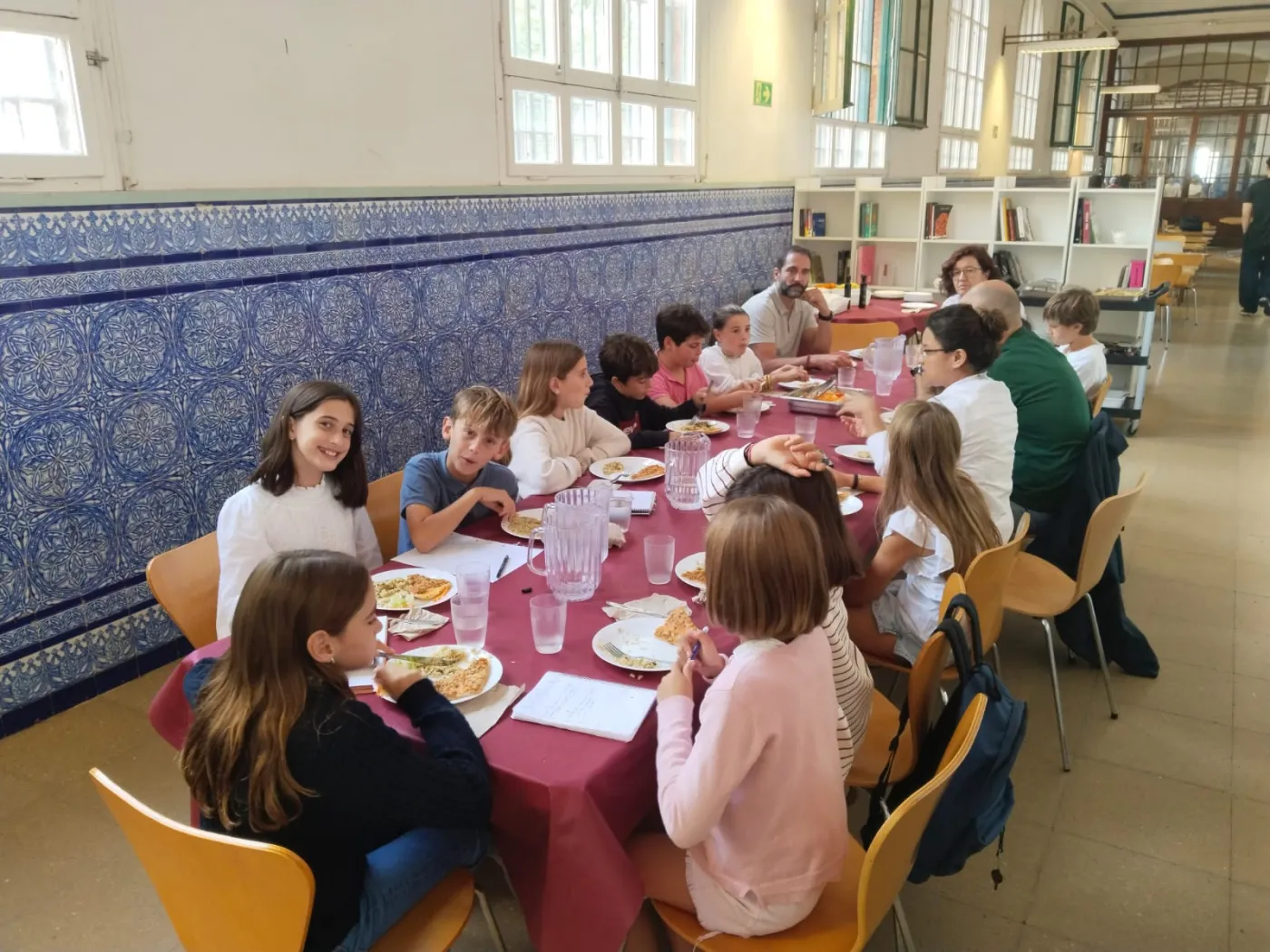 Aquesta setmana s’ha reprès l’activitat Dinem Plegats, una iniciativa que promou la participació de l’alumnat en la vida del menjador escolar. Els delegats i delegades de 5è i 6è NEI van compartir un dinar amb l’Evelyn (cap de cuina), l’Oriol Parera (director de MENOF), el Robert Quirós (nou jesuïta de l’escola), l’Anna Gomà (cap de cicle) i la Lourdes Fernández (coordinadora de l’Espai Migdia).