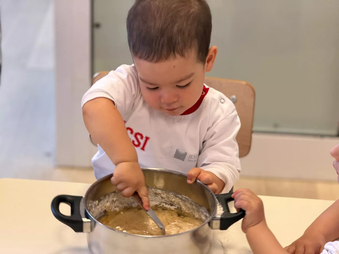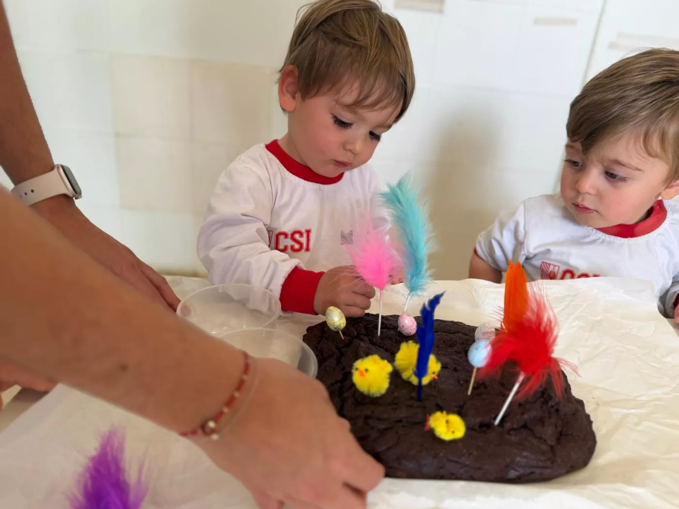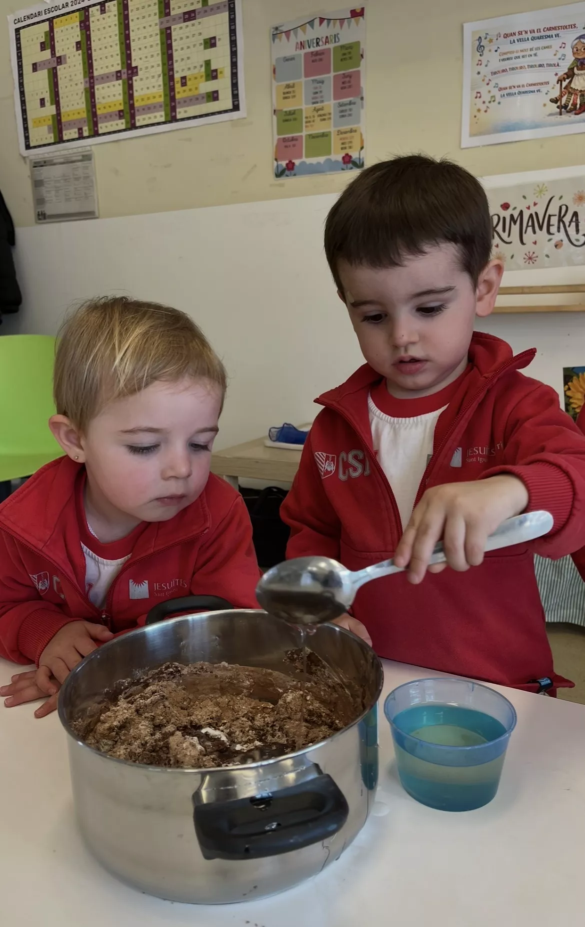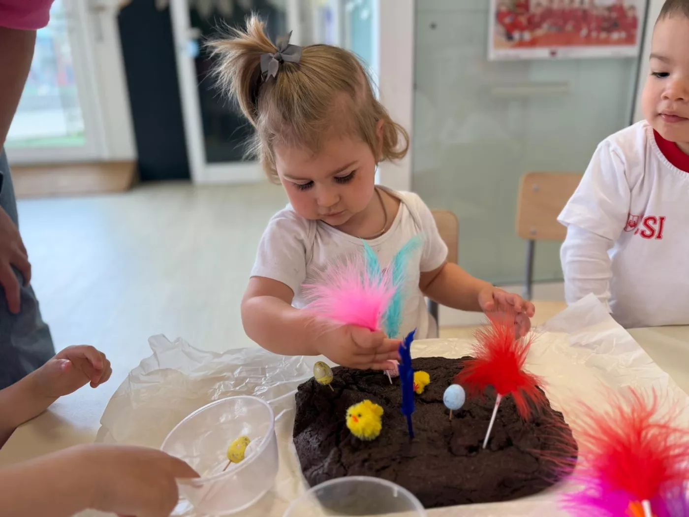 Una de les activitats principals ha estat l’elaboració de la nostra mona de Pasqua: hem anat afegint ingredient a ingredient, observant el procés i participant activament en la preparació. Després l’hem portat a la cuina de l’escola per enfornar-la, i a la tarda l’hem decorat amb elements típics i… finalment, l’hem pogut gaudir per berenar!