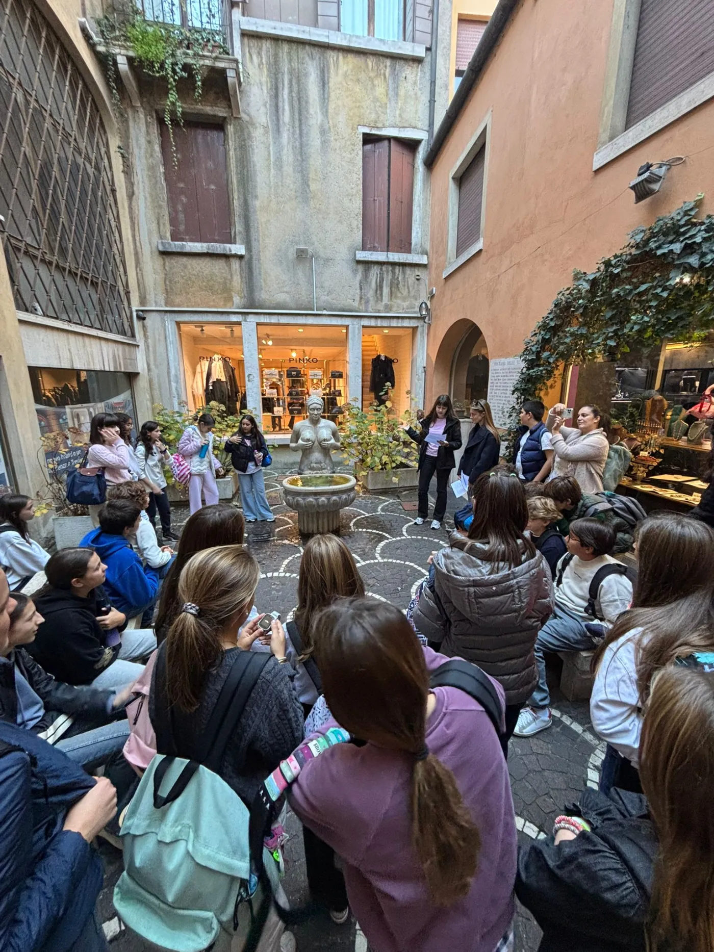 Throughout the trip, together with their Italian friends they visited several iconic sites in Treviso and Venice, such as the Squero di San Trovaso —one of the few traditional gondola boatyards still active today— and the Basilica of San Marco, one of the city’s most renowned landmarks.